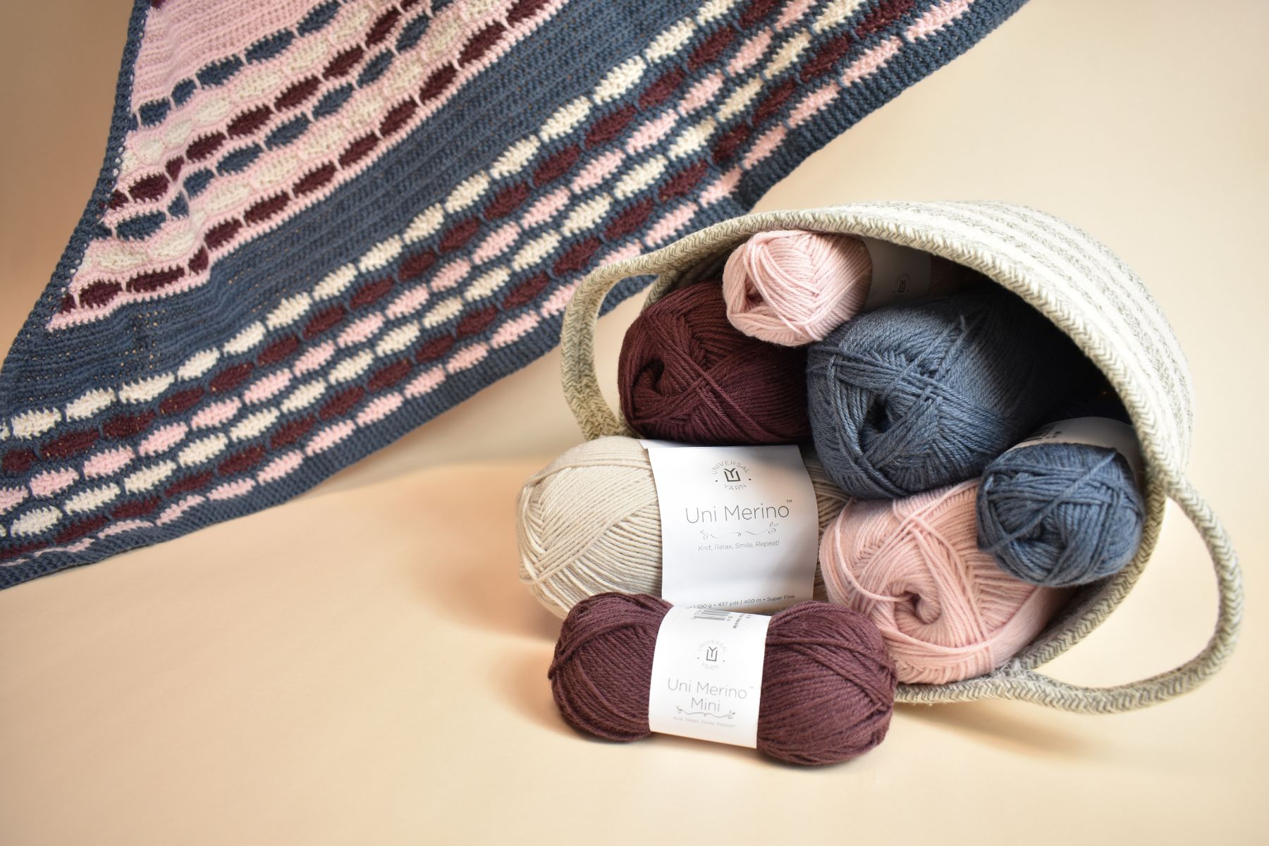 This pattern is cleverly written using both Uni Merino 100g skeins and Uni Merino Mini 25g skeins to achieve the yardage needed to complete the project. And to make things even sweeter, both yarns in our Uni Merino family are 20% off through Sunday, February 1! With a palette of over 50 shades from neutrals to neons and everything in between, the color possibilities are virtually endless!