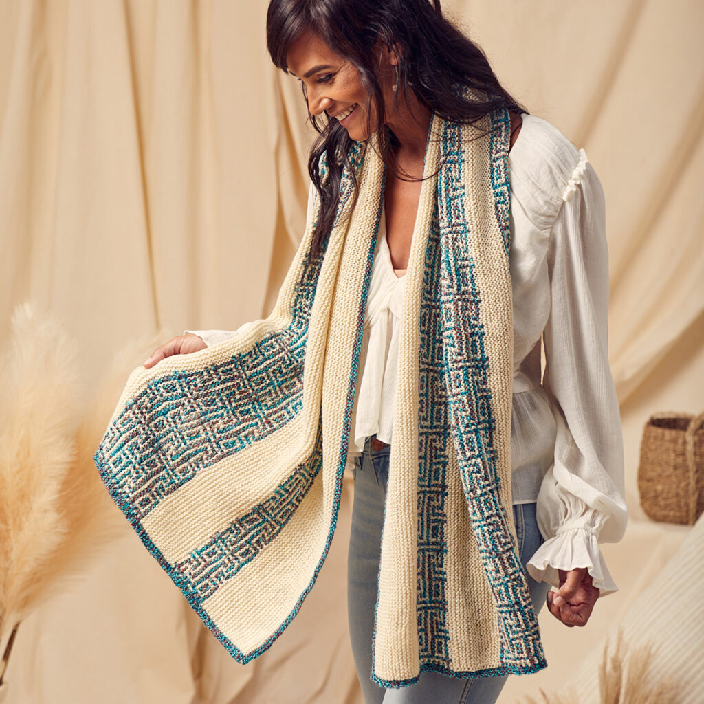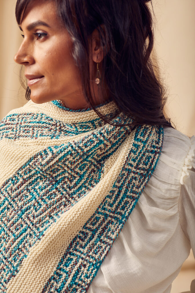Inspired by decorative tilework, this wrap plays with mosaic and intarsia in a way that feels artistic, fresh, and totally eye-catching. Translation: don’t be surprised when people stop you to ask, “Where did you get that?!”
