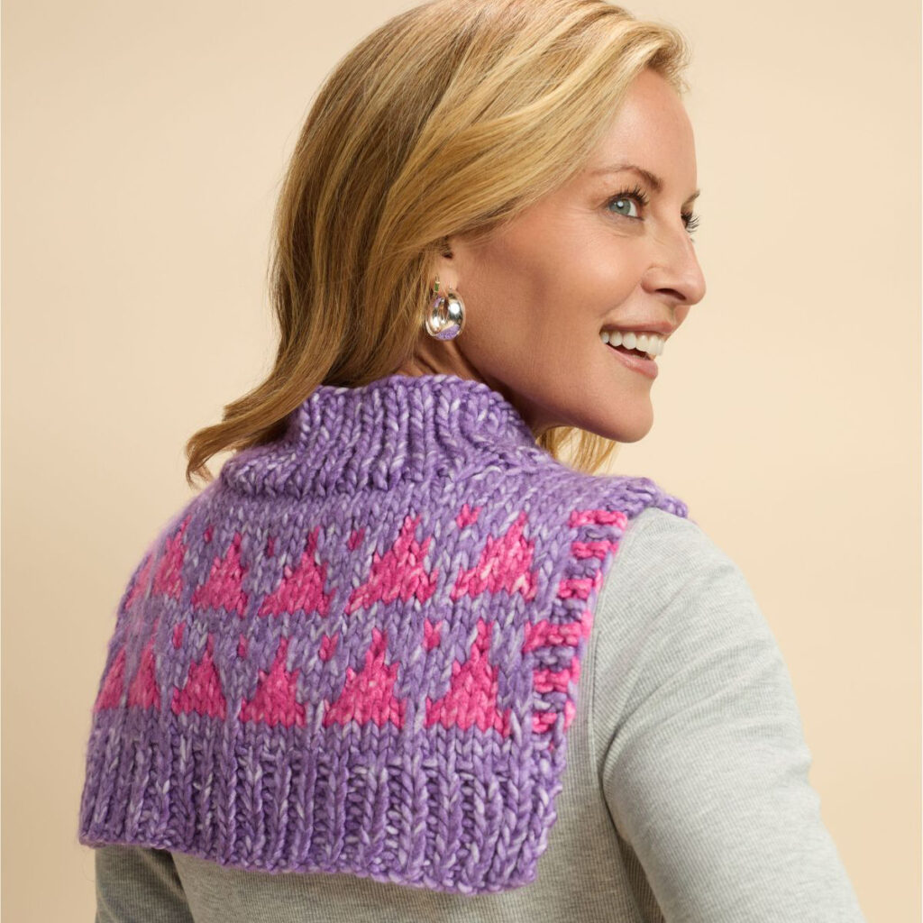 The Amethyst Dickie adds a vibrant layer to any outfit. Featuring a bold-yet-simple geometric slip stitch pattern, this piece is as easy to create as it is fun to wear. Garter edging keeps it nice and neat, while a mock turtleneck makes it extra cozy. Knit in our bulky-weight Maman yarn, this comfy dickie works up in a flash, so you’ll be sporting your new favorite accessory before you know it!